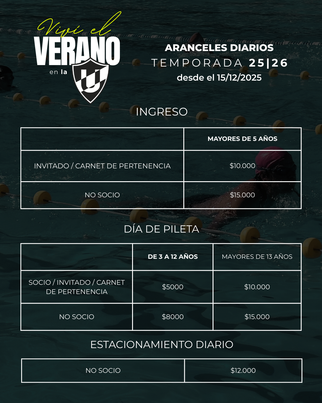 Sede Gonnet: Viernes, sábado y domingo de 17 a 18 hs (Pileta olímpica)